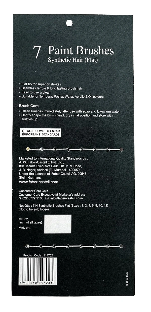 Faber-Castell Paint Brush Set - Flat, Pack of 7 (Navy Blue)